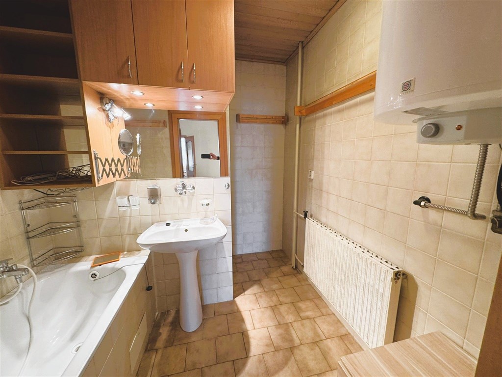 Ve výhradním zastoupení nabízíme: Prodej prostorného zděného domu vel. 10+2 se dvěma garážemi, bazénem, zahradou k všestrannému využití v blízkosti hlavní trasy směr Jihlava. Vhodné na komerci i na bydlení. Jedná se o podsklepený, dvoupodlažní dům s půdním prostorem. V objektu proběhla přístavba a částečná rekonstrukce původního domu: nový krov + střešní krytina Bramac, zateplení domu (tloušťka zdiva 45 cm + 10 cm polystyren), plastová okna, rozvody elektroinstalace v mědi, rozvody vody v plastu.... U domu vydlážděný dvůr s krytým bazénem, zastřešenou pergolou s venkovním krbem a garážemi (vrata dálkově ovládaná). Dispozice suterénu: technické zázemí, sklepy, prádelna, dílna, v přízemí: kuchyň, spíž, 5 místností (kanceláří), 2 x šatna, koupelna, WC, II.NP: kuchyň, 5 místností (kanceláří), šatna, koupelna, WC, zimní zahrada, lodžie. Napojení na veškeré inž. sítě, ústřední plynové vytápění + funkční krb v obou patrech. PENB prozatím nedodán, z tohoto důvodu uvádíme energetickou třídu G, bližší informace u makléře.
